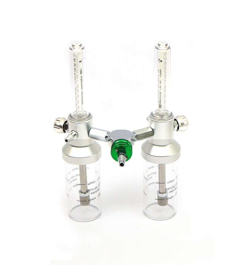 配套于醫(yī)用中心供氧系統(tǒng),供醫(yī)療單位急救給氧和缺氧病人氧氣吸入用。一分為二氧氣吸入器,一個進氣接頭兩個出氧口,氧氣流量部分可獨立控制,互不影響。